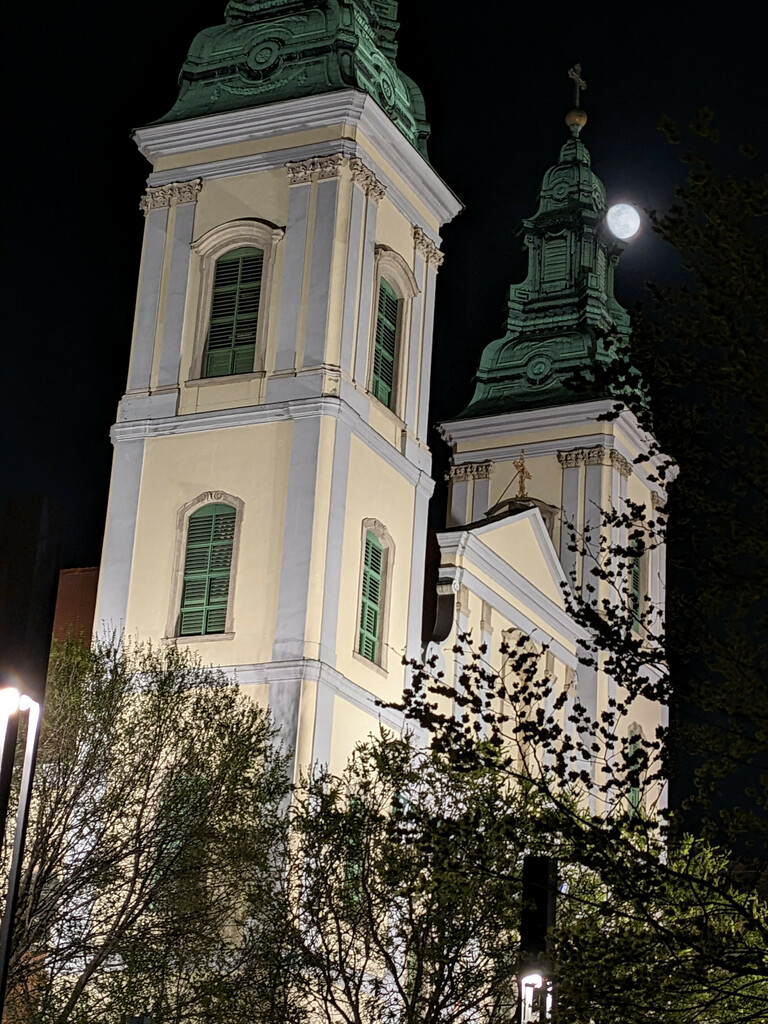| A walk on the riverbank at night. | Buda all lit up. | A nearly full Moon. |